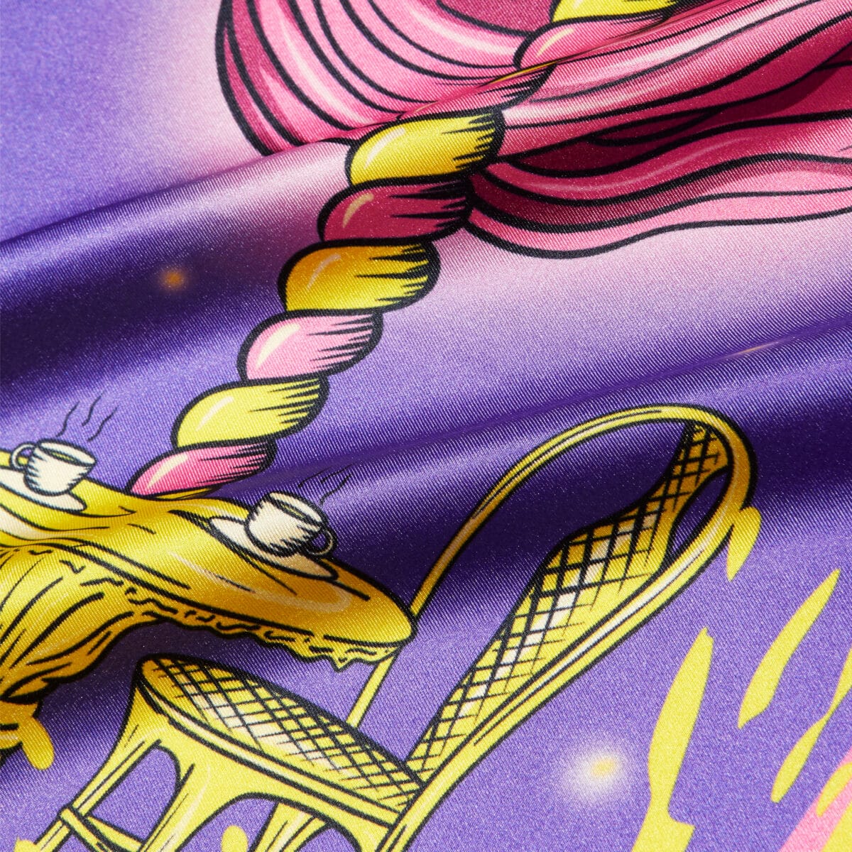 Carré de soie violet & jaune, Rayures de carrousel – Fait main à Paris