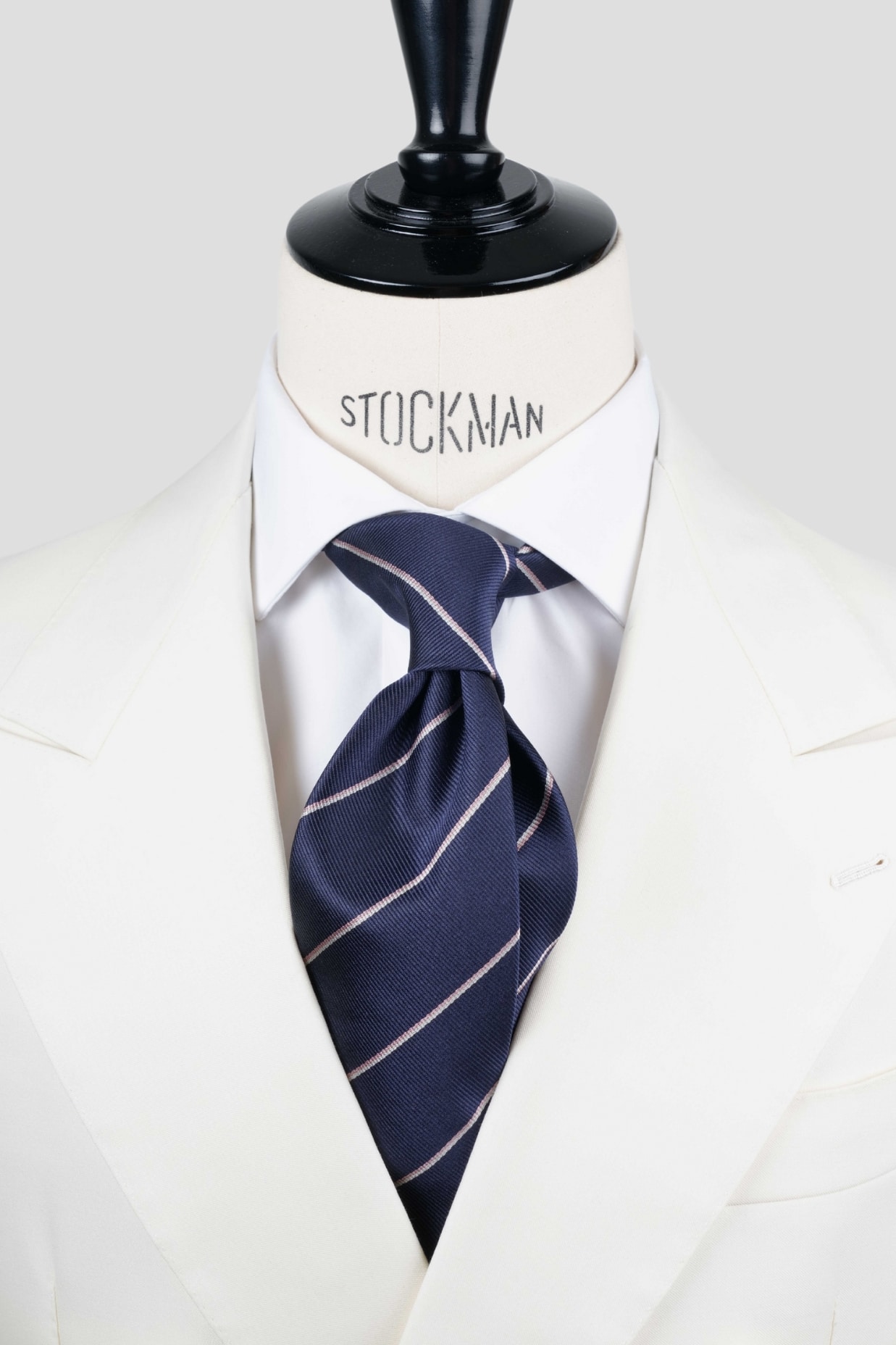Nous entoilons votre cravate bleu foncé sur toute sa longueur afin de lui assurer un excellent maintien.