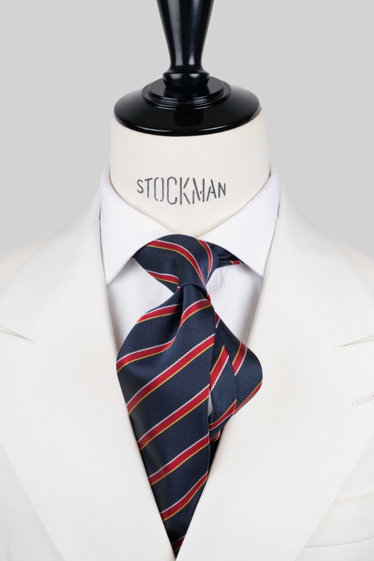 Cravate bleu marine à rayures – Soie tissée 3 plis artisanale