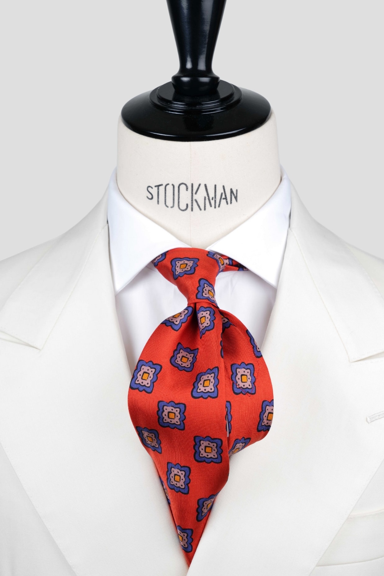 Cravate corail – Soie imprimée madder – 7 plis artisanale