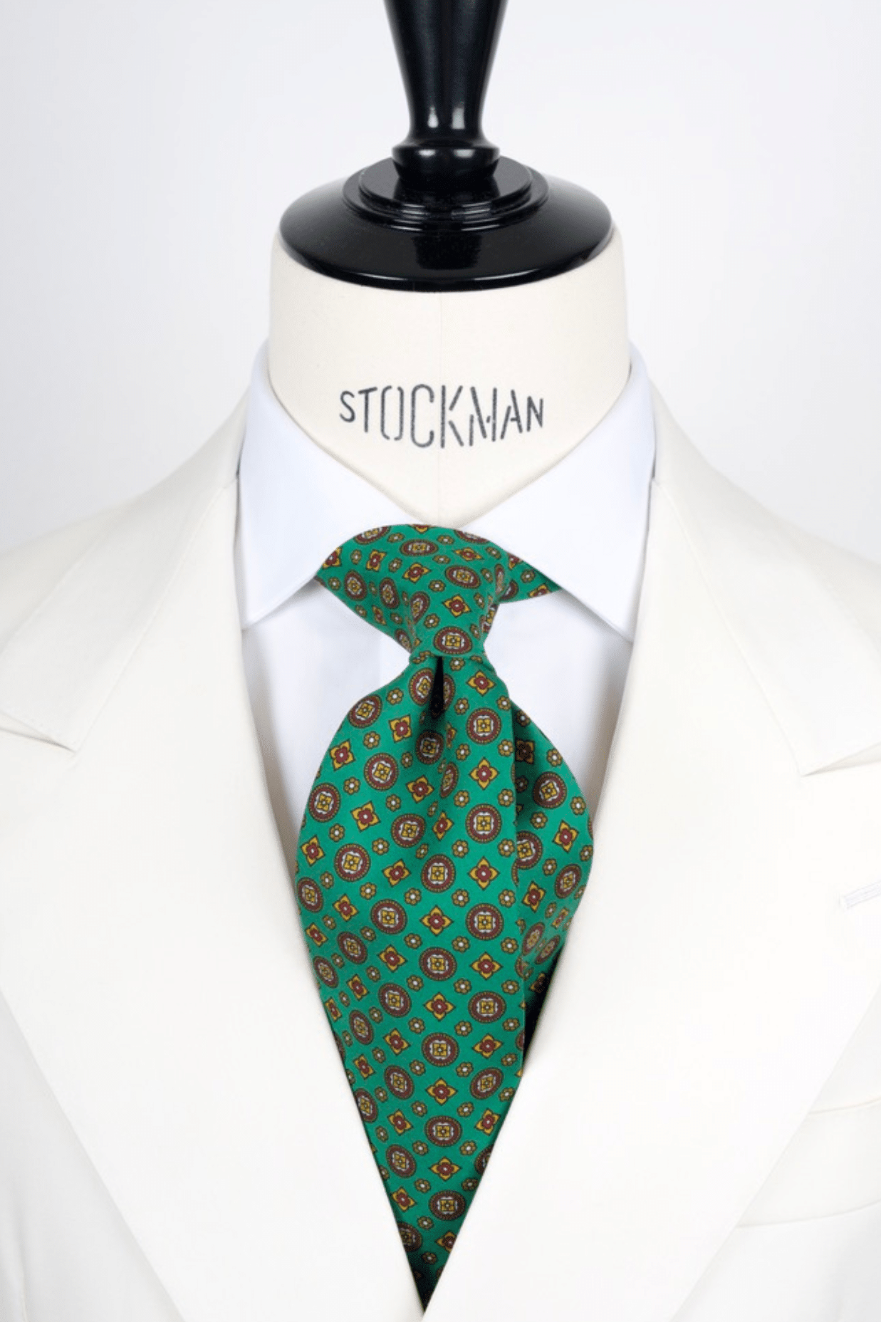 En revanche, le nœud double se marie parfaitement avec une cravate sans triplure et de préférence en soie imprimée : voir nos modèles à 7 plis.
