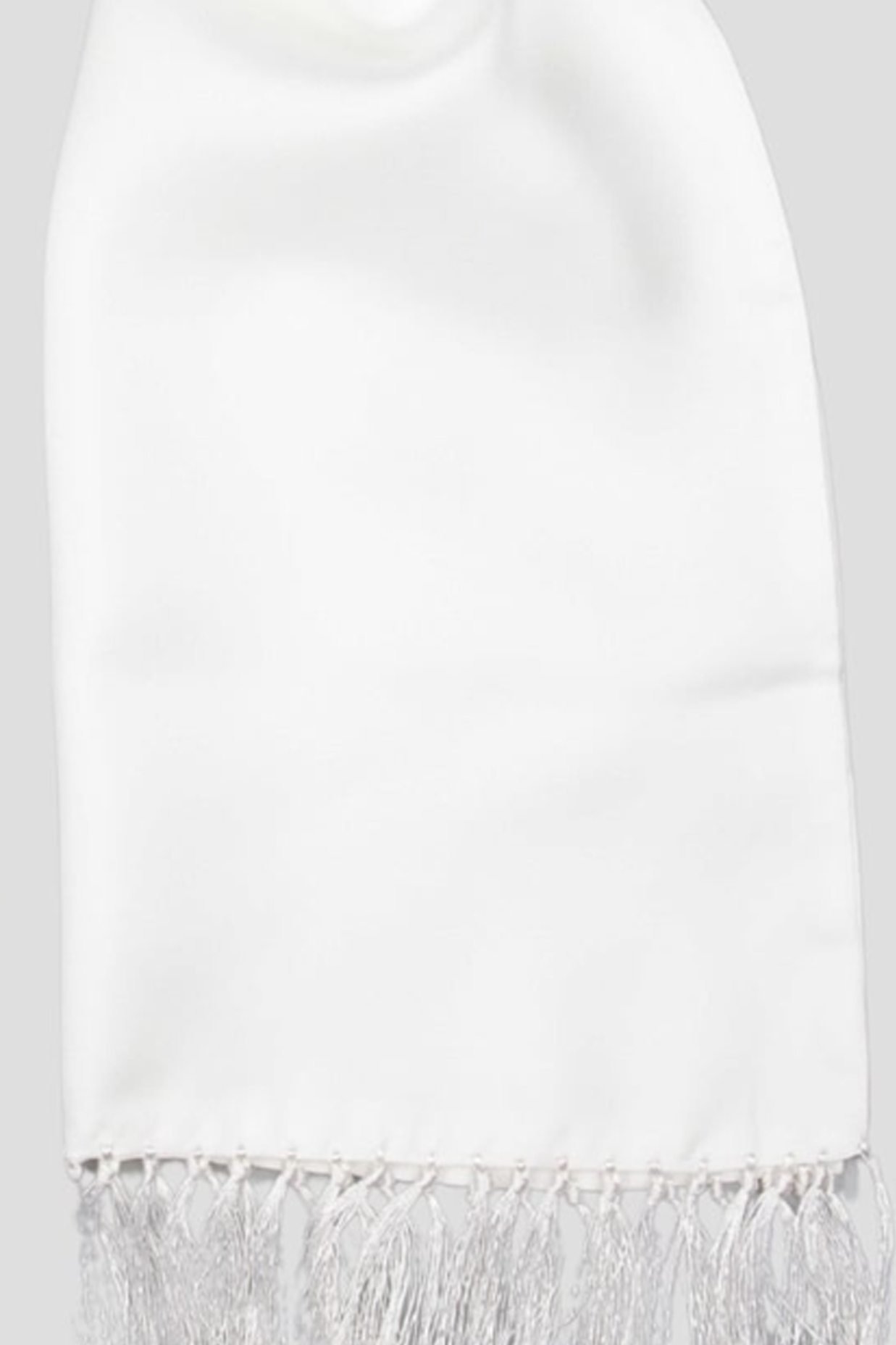 - franges en fil de soie, tissées sur un métier à part puis cousues main sur l’écharpe ;